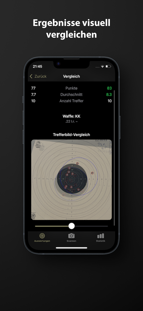 - Zielscheiben scannen – Treffer werden automatisch erkannt
